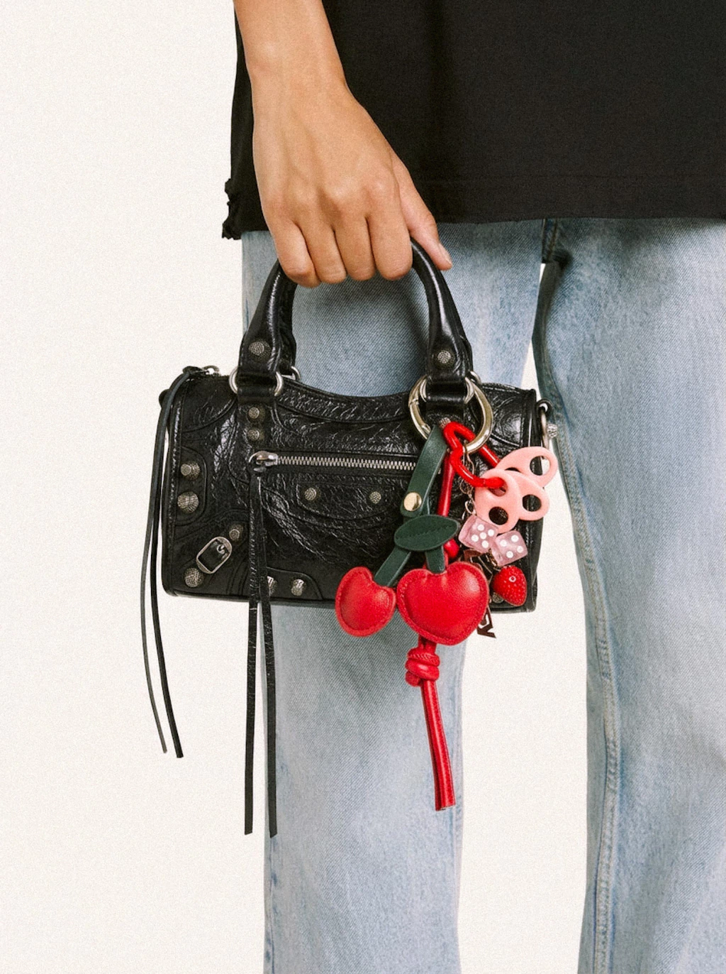 O Cherry Dream Bag Charm é para quem gosta de peças marcantes, divertidas e com aquela estética doce que transforma qualquer bolsa. Com mix de elementos em vermelho, rosa e preto, ele une charme, personalidade e um toque retrô-pop no melhor estilo Locksy.